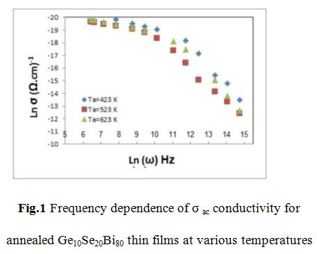 Fig.1 Frequency dependence of σ ac conductivity for annealed Ge10Se20Bi80 thin films at various temperatures