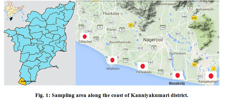 Figure 1: Sampling area along the coast of Kanniyakumari district.