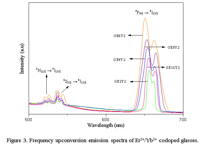 Figure 3: Frequency upconversion emission spectra of Er3+/Yb3+ codoped glasses