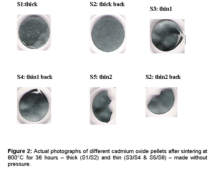 Fact that only the thin samples got curved or got curvature with multiple depressions and crack/s on firing has been verified by one 800 °C firing of 4 pellets – two thick (~1 mm) and two thin (~200 µm) pellets of CdO.