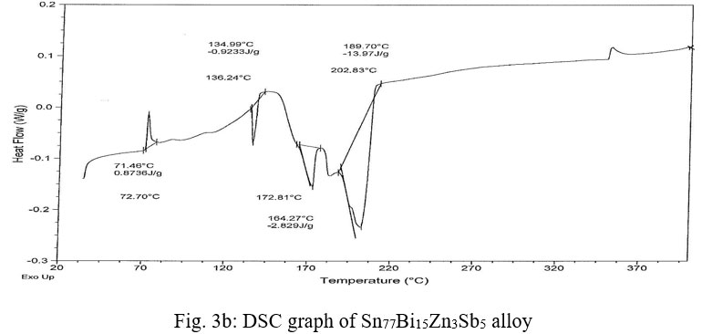 Figure 3b: DSC graph of Sn77Bi15Zn3Sb5 alloy