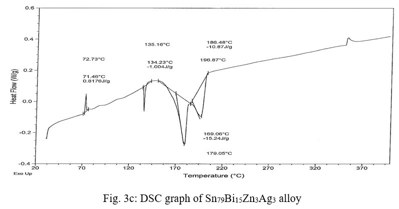 Figure 3c: DSC graph of Sn79Bi15Zn3Ag3 alloy