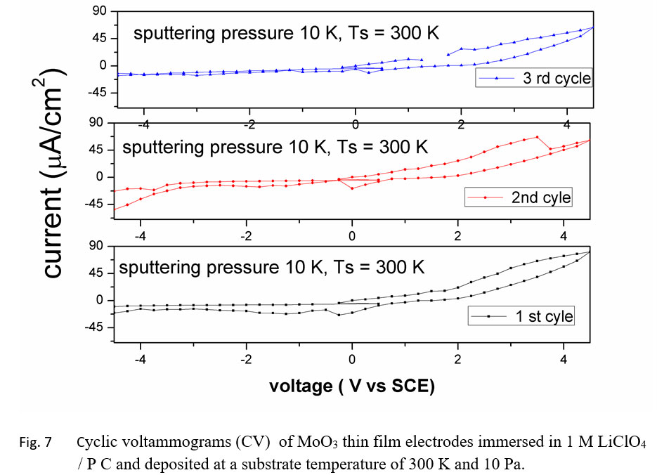 KEYWORDS:Cyclic Voltametry (CV); Electrochromism;Metal oxides; Photochromism; Sputtering pressure