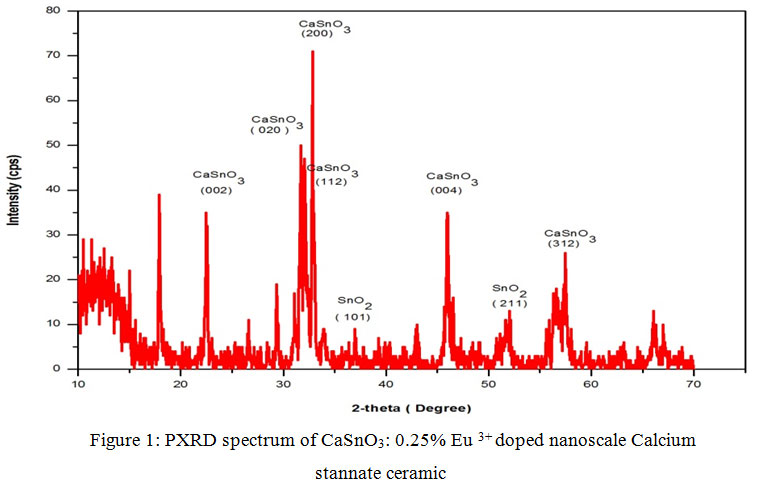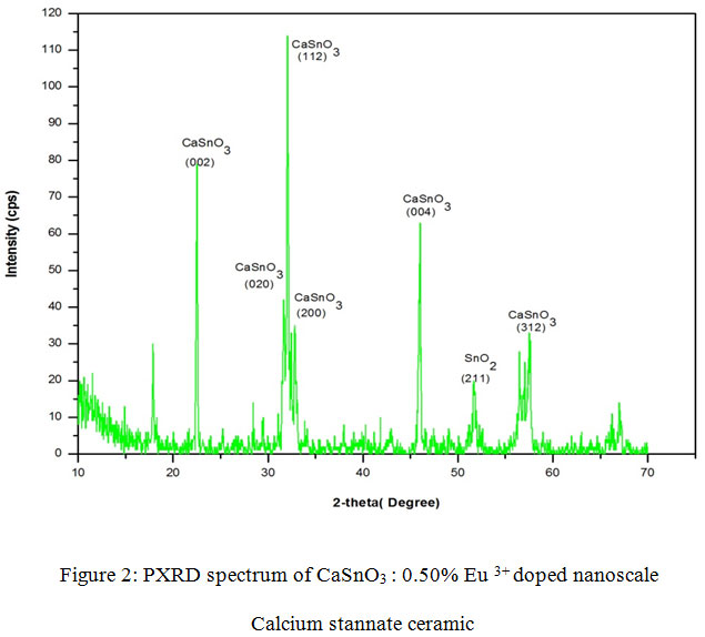 Table 1: EDAX analysis of Eu 3+ doped   nanoscale Calcium stannate ceramics.