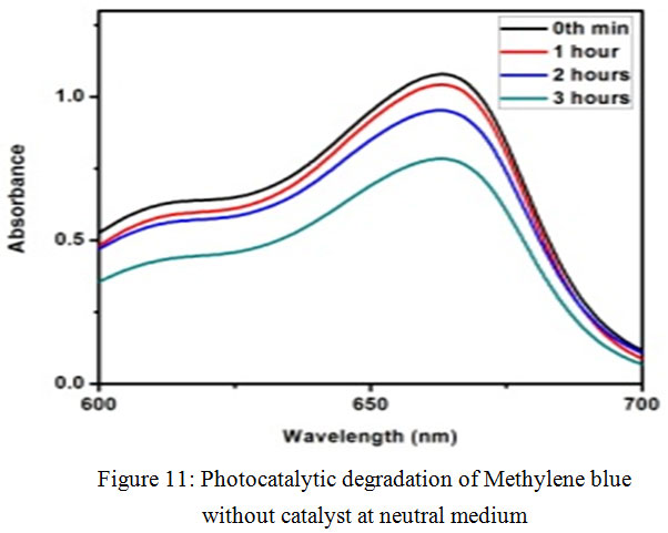 Figure 11: Photocatalytic degradation of Methylene blue without catalyst at neutral medium.