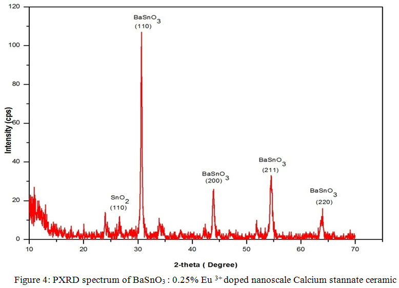 Figure 4: PXRD spectrum of BaSnO3 : 0.25% Eu 3+ doped nanoscale Calcium stannate ceramic.