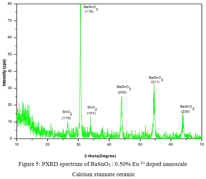 Figure 5: PXRD spectrum of BaSnO3 : 0.50% Eu 3+ doped nanoscale Calcium stannate ceramic.