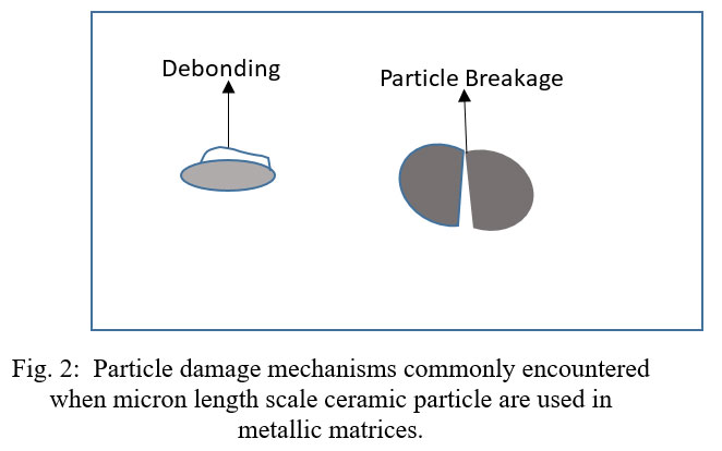 Figure 2: Particle damage mechanisms commonly encountered when micron length scale ceramic particle are used in metallic matrices