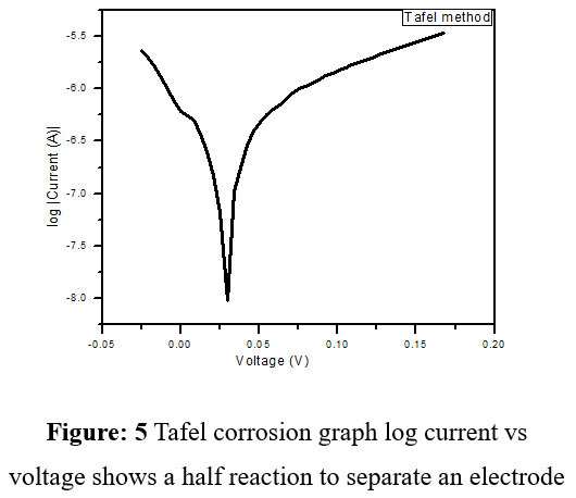 Figure 5: Tafel corrosion graph log current vs voltage shows a half reaction to separate an electrode
