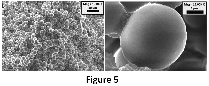 The reinforcing effect of GO on microcapsule was analysed in terms of size, morphology and shell thickness by using SEM analysis. Un-reinforced microcapsules (MC) were also shown in Figure 3. The surfaces of MC samples are rough and the shapes of microcapsules are straight. Yuan et. al., obtained similar microcapsules with a two-step polymerization method by using sodium dodecylbenzene sulfonate (SDBS) as emulsifying agent.24 On another hand, two different microcapsules exist in the 0.25 GO-MC sample (Figure 4); one of them is rougher with bigger size, the other one is smooth with small size. Moreover, 0.5 GO-MC samples (Figure 5) have just one type of microcapsules which is smooth with small size. This situation shows that GO addition significantly affects the microcapsule formation process.