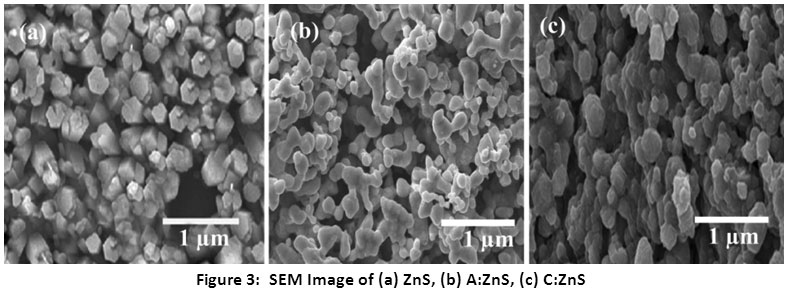 Figure 3: SEM Image of (a) ZnS, (b) A:ZnS, (c) C:ZnS