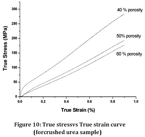 Figure 10: True stresses True strain curve (for crushed urea sample)