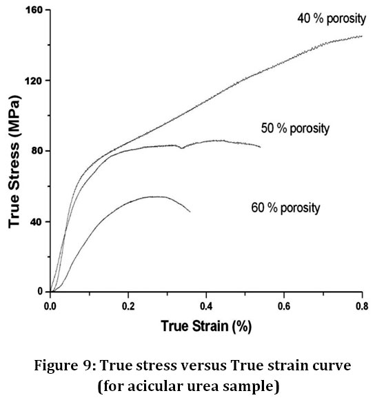 Figure 9: True stress versus True strain curve (for acicular urea sample)