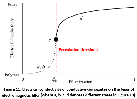 Figure 11: Electrical conductivity of conductive composites on the basis of electromagnetic filler (where a, b, c, d denotes different states in Figure 10).