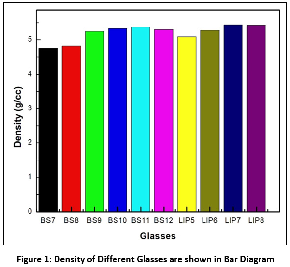 Figure 1: Density of Different Glasses are shown in Bar Diagram