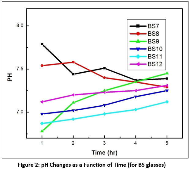 Figure 2: pH Changes as a Function of Time (for BS glasses)