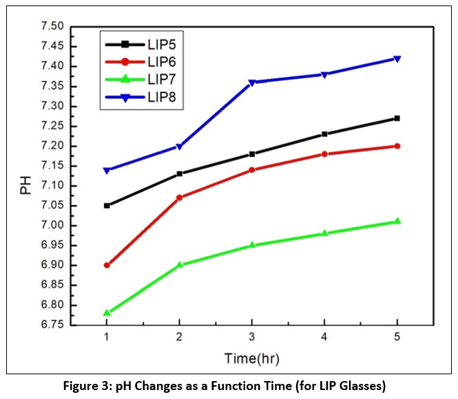 Figure 3: pH Changes as a Function Time (for LIP Glasses)
