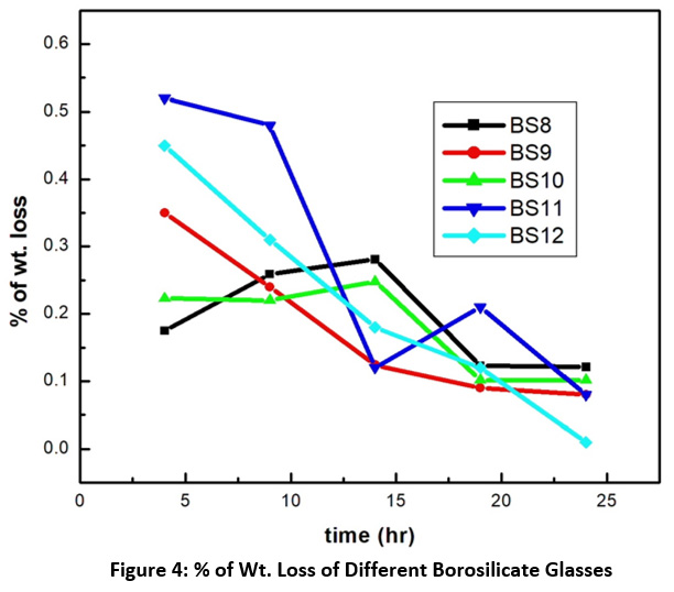 Figure 4: % of Wt. Loss of Different Borosilicate Glasses