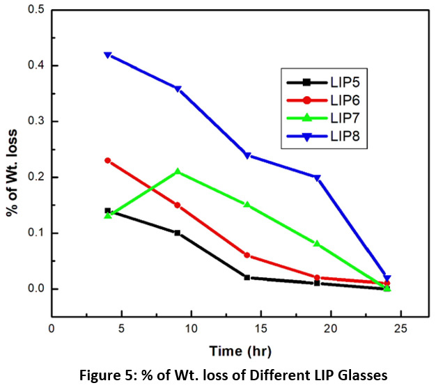 Figure 5: % of Wt. loss of Different LIP Glasses