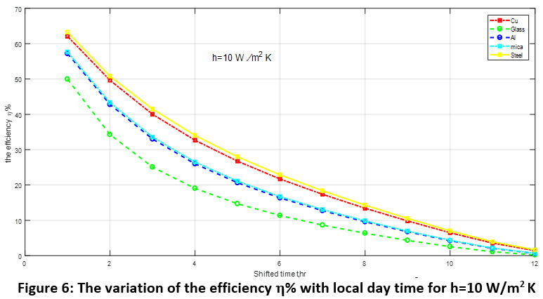 Table 6: The variation of the efficiency η with local day time for [ h=10 W / m2 K]