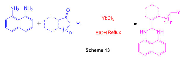 By building up aryl diamines with -carbonyl mixtures catalysed by ytterbium chloride, an effective technique for combining functionalized benzimidazoles and perimidines is developed (Scheme 13) 59.