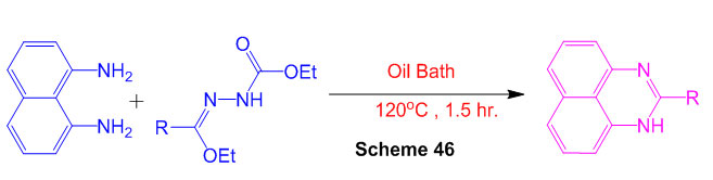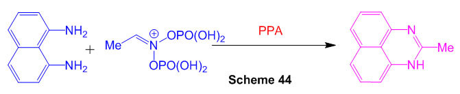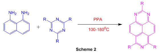 1,8-diaminonaphthalene reacts with 1,3,5-triazine in presence of polyphosphoric acid(Scheme 2) leads to perimidine 48.