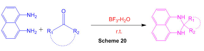 Synthesis of Perimidine and 1,5-Benzodiazepine Derivatives Using Tamed Brønsted Acid, BF3-H2O as a catalyst (Scheme 20) 66.