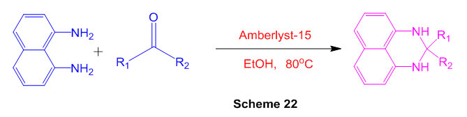 A proficient convention has been created to incorporate different dihydro-1H-perimidine subordinates utilizing financially accessible Amberlyst-15 as a catalyst (Scheme 22) 68.