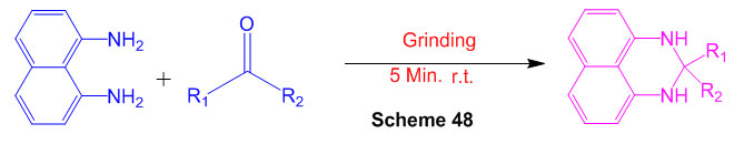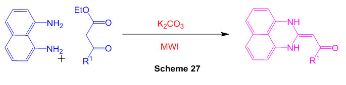 An easy immediate technique to blend the perimidine under dissolvable free conditions as another strategy is accounted under microwave irradiation (Scheme 27) 73.