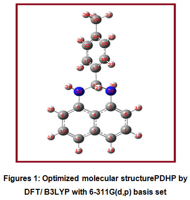 Figures 1: Optimized molecular structurePDHP by DFT/ B3LYP with 6-311G(d,p) basis set