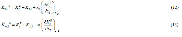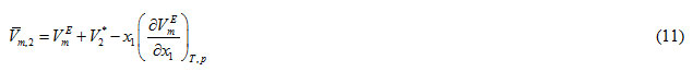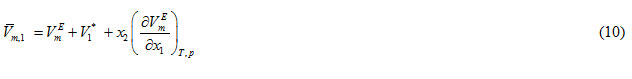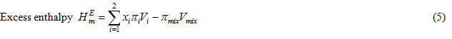 Here, xi is the mole fraction of the components (In this study, x1 denotes the mole fraction of ethyl acetate and x2 represents the mole fraction of 1-ethanol).