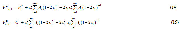 The molar volume at the infinite dilution can be derived from the equ (14) and equ (15) for the ethyl acetate and 1- ethanol respectively.