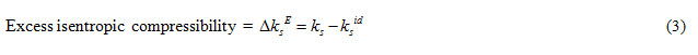 The average partial molar isentropic compressibility of the selected components at the constant temperature (T) and atmospheric pressure are given in equ (12) and equ (13) respectively