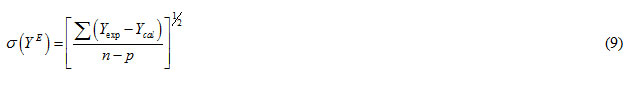 Here Yexp is the experimental data and Ycal is the theoretical data. The n denotes the total number of experimental values and p is the number of coefficients.