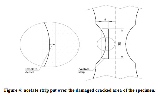 Figure 4: Acetate strip put over the damaged cracked area of the specimen.