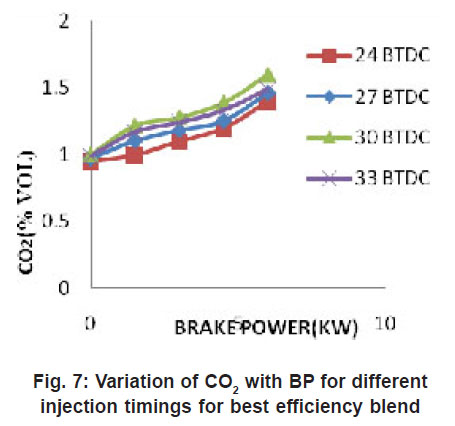 For Nerium oil at 30° BTDC,CO2 emissions is found to be higher by 0.14% when compared to 27° BTDC and even higher by 0.35% when compared to diesel at 27° BTDC