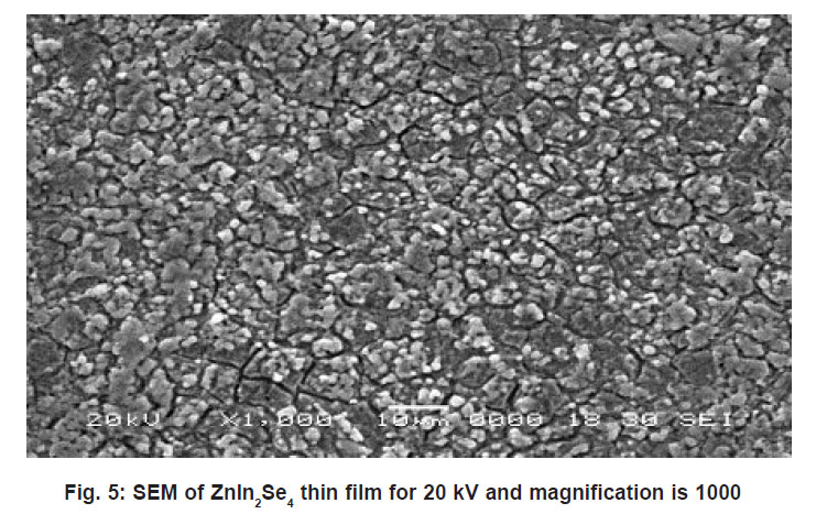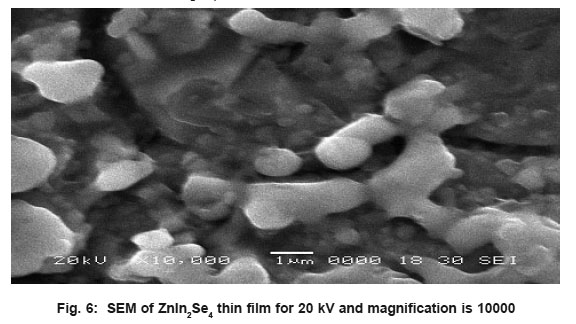 Figure 6(a): SEM of ZnIn2Se4 thin film for 20 kV and magnification is 5000