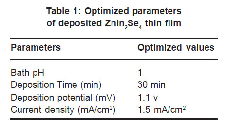 Table 1: Optimized parameters of deposited ZnIn2Se4 thin film