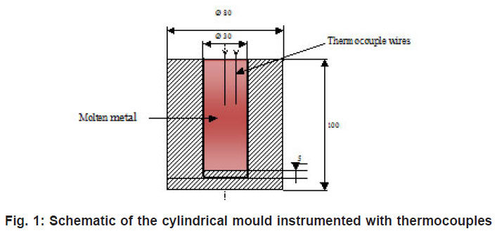 Set-up of measuring solidification temperatures are shown in Fig. 1. The cooling curves of the casting and variation of temperature at different location in the molten metal are recorded by using computer aided data acquisition system (National Instrument thermocouple system).