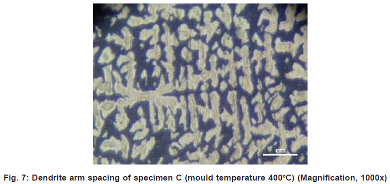 Figure 7: Dendrite arm spacing of specimen C (mould temperature 400oC) (Magnification, 1000x)
