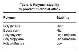 Table 1: Polymer stability to prevent microbial attack