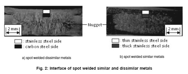 Figure 2: Interface of spot welded similar and dissimilar metals