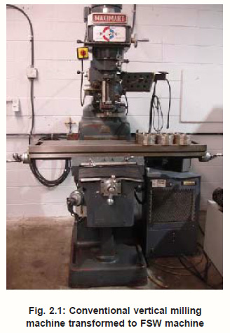 A conventional vertical milling machine shown in figure 2.1 was transformed into a friction stir welding machine by designing a fixture that makes the milling machine capable of performing friction stir welding process. The fixture used in the process was designed to be firmly clamped the specimen during the process as shown in figure 2.2