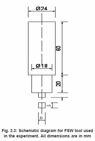 The tool used for FSW process is a high carbon steel with square pin profile which was recommended by several workers [3, 6,10and 11] as it is the most effective tool used in the process. Figure 2.3 shows schematic diagram for the tool.