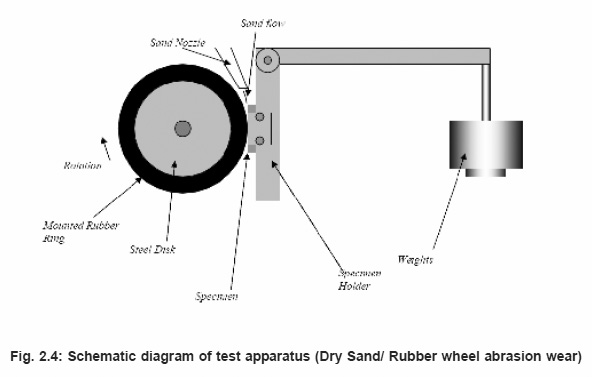 Figure 2.4: Schematic diagram of test apparatus (Dry Sand/ Rubber wheel abrasion wear)
