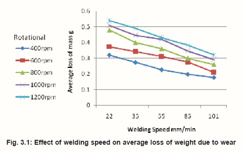 Figure 3.1: Effect of welding speed on average loss of weight due to wear