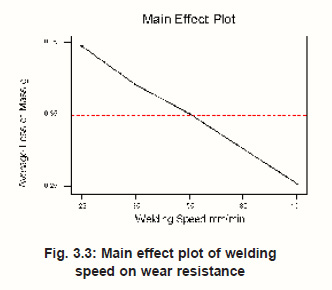 Figure 3.3: Main effect plot of welding speed on wear resistance