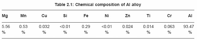 The chemical nominal composition of 5083A alloy base material used in this investigation is presented in table 2.1. The welds were produced in 6 mm thick plates with mechanical properties shown in table 2.2.
