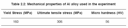Table 2.2: Mechanical properties of Al alloy used in the experiment