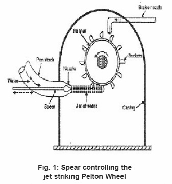 Figure 1: Spear controlling the jet striking Pelton Wheel